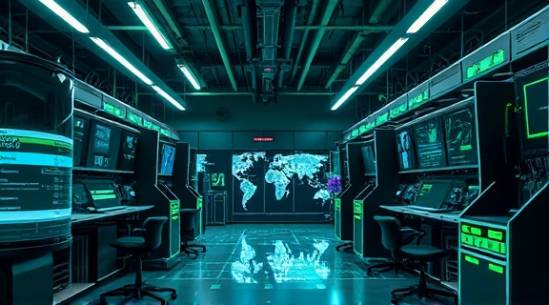 innovative AI solutions, curious, testing new AI frameworks, photorealistic, high-tech lab filled with cutting-edge gadgets, highly detailed, virtual blueprints swirling around, crisp high-definition, electric greens and blacks, stark artificial lighting, shot with a telephoto lens.