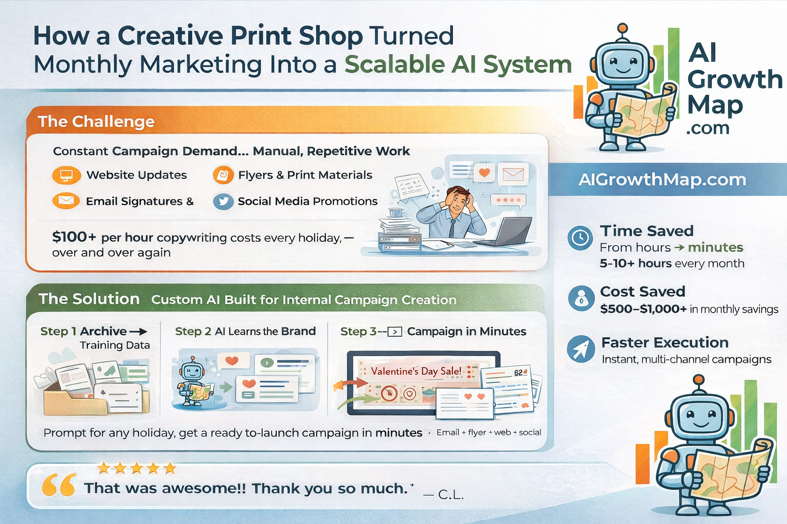 How One Creative Print Shop Turned Monthly Marketing Into a Scalable AI System